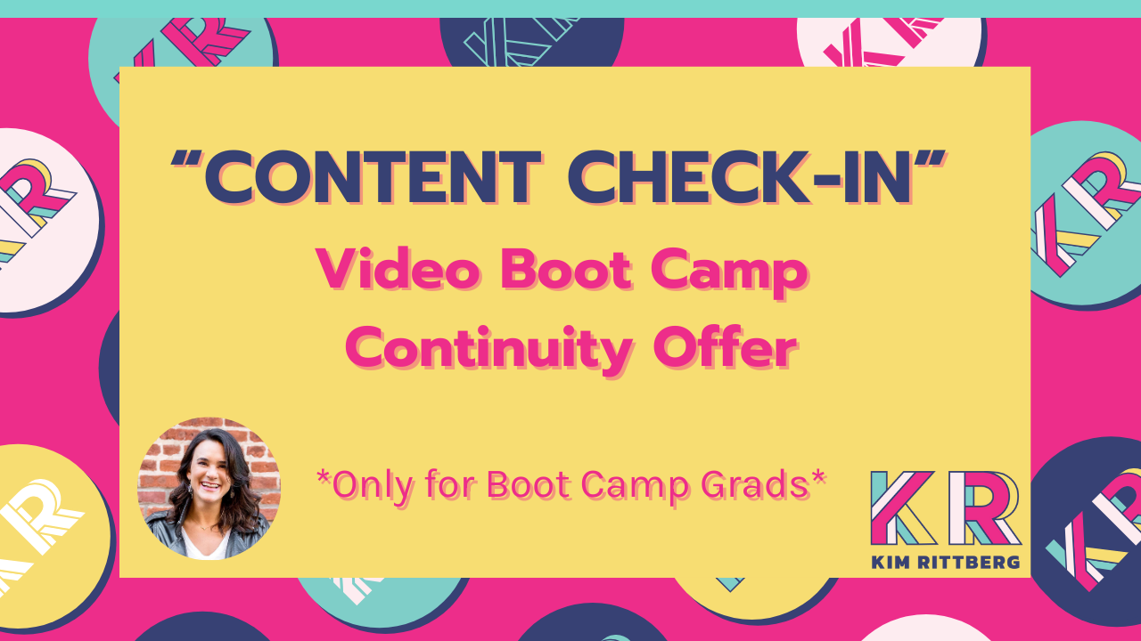 High-touch content strategy and support to grow fast and strong and keep up the great work you started in Video Boot Camp. Focus is on continuing your growth and growing your business in a targeted way - content strategy, video production, and business development (through content). To continue to help you convert your CONTENT into CASH!